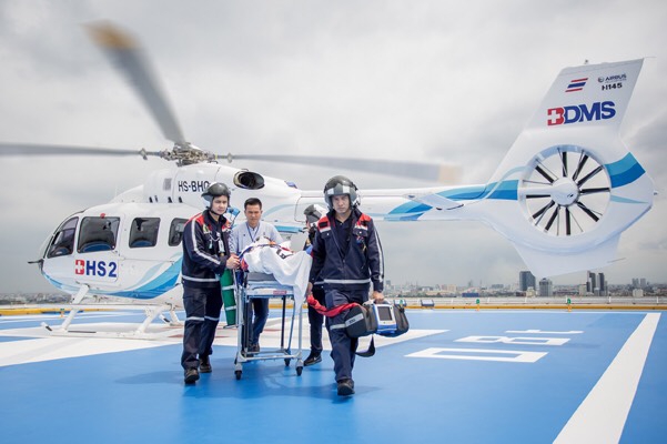 นพ.อัญฤทธิ์ แสงจรัสวิชัย ผู้อำนวยการศูนย์บริการการแพทย์ฉุกเฉินกรุงเทพ กล่าวว่า หากมีผู้ป่วยหรือผู้ได้รับบาดเจ็บอยู่ในพื้นที่ที่ห่างไกล หรือในช่วงเทศกาลที่มีการจราจรหนาแน่น ศูนย์เคลื่อนย้ายผู้ป่วยบีดีเอ็มเอส (BDMS Medevac Center) มีบริการเฮลิคอปเตอร์ทางการแพทย์ฉุกเฉิน (Sky ICU) ให้บริการรับ-ส่ง คนไข้ฉุกเฉินเพื่อรับการรักษาอย่างเร่งด่วนตั้งแต่แรกรับ ด้วยอุปกรณ์การแพทย์ฉุกเฉินขั้นสูง ติดตั้งบนเฮลิคอปเตอร์ตามมาตรฐานนิรภัยการบินขององค์กรการบินระหว่างประเทศ