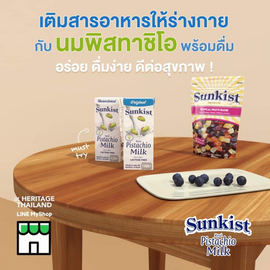เครื่องดื่มน้ำนมพิสทาชิโอแบรนด์ซันคิสท์ มีให้เลือกไว้ติดบ้านถึง 3 รสชาติ ได้แก่ รสออริจินอล สูตรไม่เติมน้ำตาล และรสช็อกโกแลต นอกจากจะดื่มง่าย ดื่มได้ทุกเพศทุกวัยแล้ว ยังเป็นทางเลือกที่ดีสำหรับผู้ที่หลีกเลี่ยงการดื่มหรือรับประทานอาหารที่มีส่วนผสมของนมวัวและนมถั่วเหลือง และสามารถนำมาเป็นส่วนประกอบในการทำอาหารให้มีความอร่อยอย่างลงตัว พร้อมให้คุณประโยชน์มากมาย ซันคิสท์เป็นเครื่องดื่มน้ำนมพิสทาชิโอระดับพรีเมียมที่ใช้เมล็ดพิสทาชิโอนำเข้าจากอเมริกา ในกล่องขนาด 180 มิลลิลิตร ราคา 20 บาท และกล่องขนาด 946 มิลลิลิตร ราคา 99 บาท พร้อมให้คุณดื่มอร่อยได้ประโยชน์แล้ว ที่ร้านสะดวกซื้อและซูเปอร์มาร์เก็ตชั้นนำทั่วประเทศ หรือ สามารถสั่งซื้อผ่านช่องทางออนไลน์ของเครือเฮอริเทจเพื่อความสะดวกสบายได้ที่ LINE Official : @heritagethailand สอบถามข้อมูลเพิ่มเติมได้ที่ โทร 02-813-0954-5 หรือติดตามข่าวสารและกิจกรรมต่างๆ ได้ที่ www.facebook.com/SunkistTH และ IG:sunkistthailand